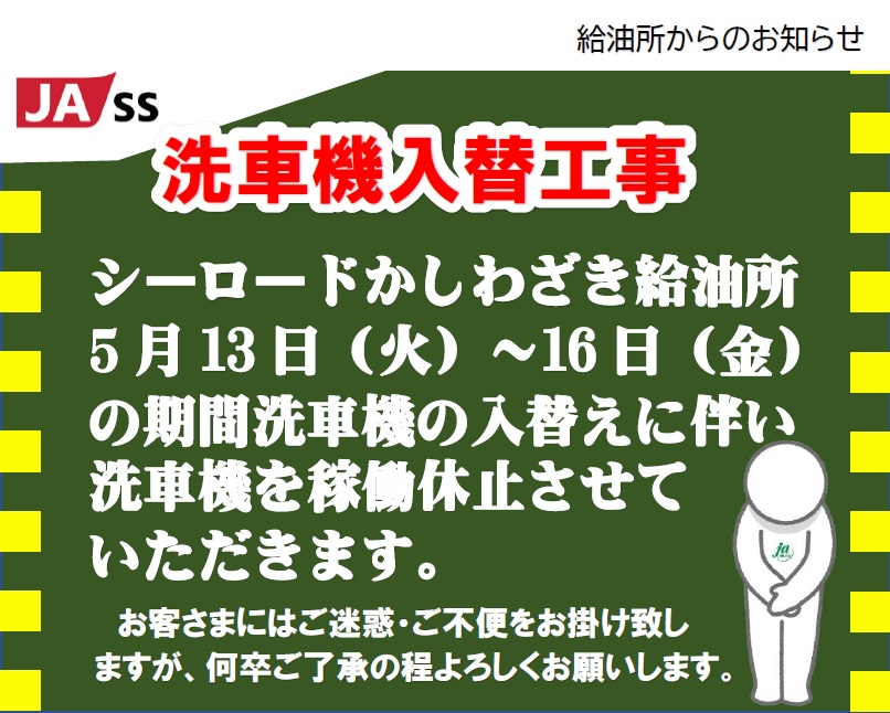 シーロードかしわざき給油所・刈羽給油所 洗車機入替工事について