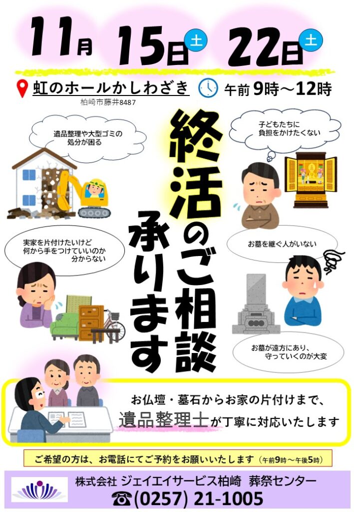 ジェイエイサービス柏崎お知らせ一覧お知らせ【11月】『終活相談』承ります