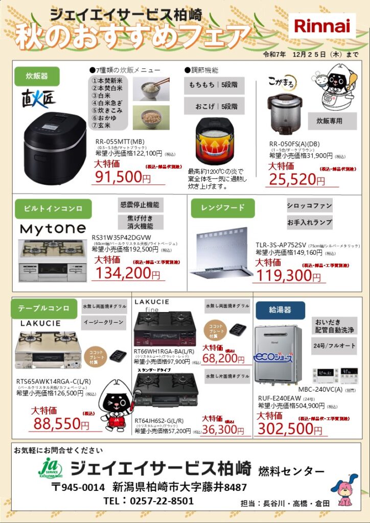 ジェイエイサービス柏崎お知らせ一覧お知らせ♨️ガス器具🍁秋のおすすめフェア開催中🍂