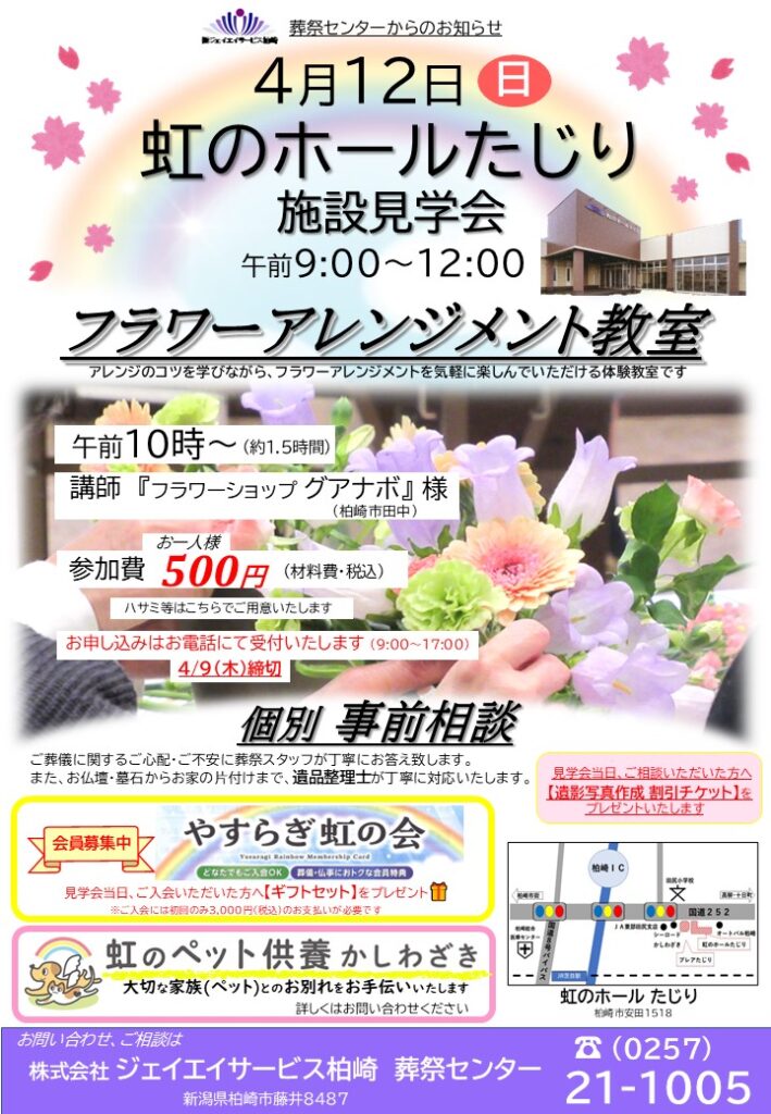 ジェイエイサービス柏崎お知らせ一覧お知らせ虹のホールたじり『施設見学会』を開催いたします