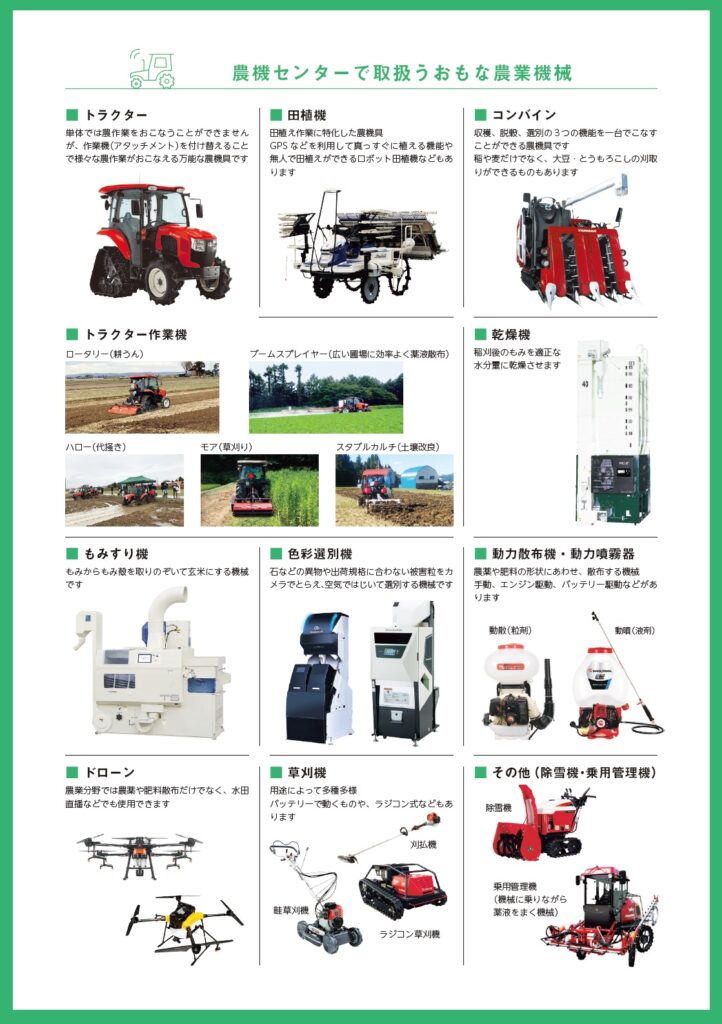 他にも多くの取り扱いメーカーがございますので、詳しくは各農機センターへお問い合わせください。